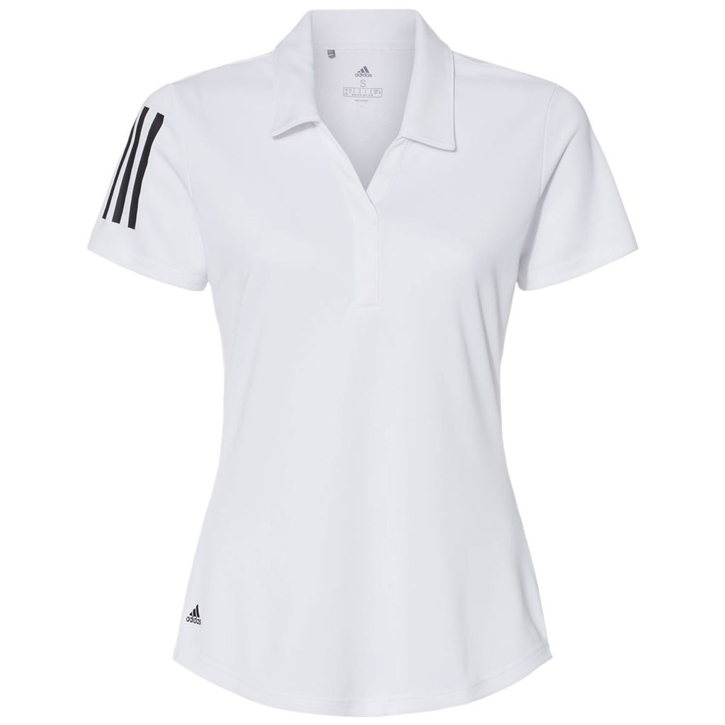 Add your custom embroidery to the adidas Women's White/Black Floating 3-Stripes Sport Shirt to create a stylish look that can easily serve as part of a uniform or an every day wardrobe addition. The feminine fit with unique asymmetric stitching across the back placket add flair to this already ideal look. Made of recycled polyester, this sport shirt offers a hydrophilic finish and UPF 50+ protection making it perfect for days spent indoors or out working or playing hard. Add a company logo to offer as employee gifts that people will appreciate.