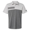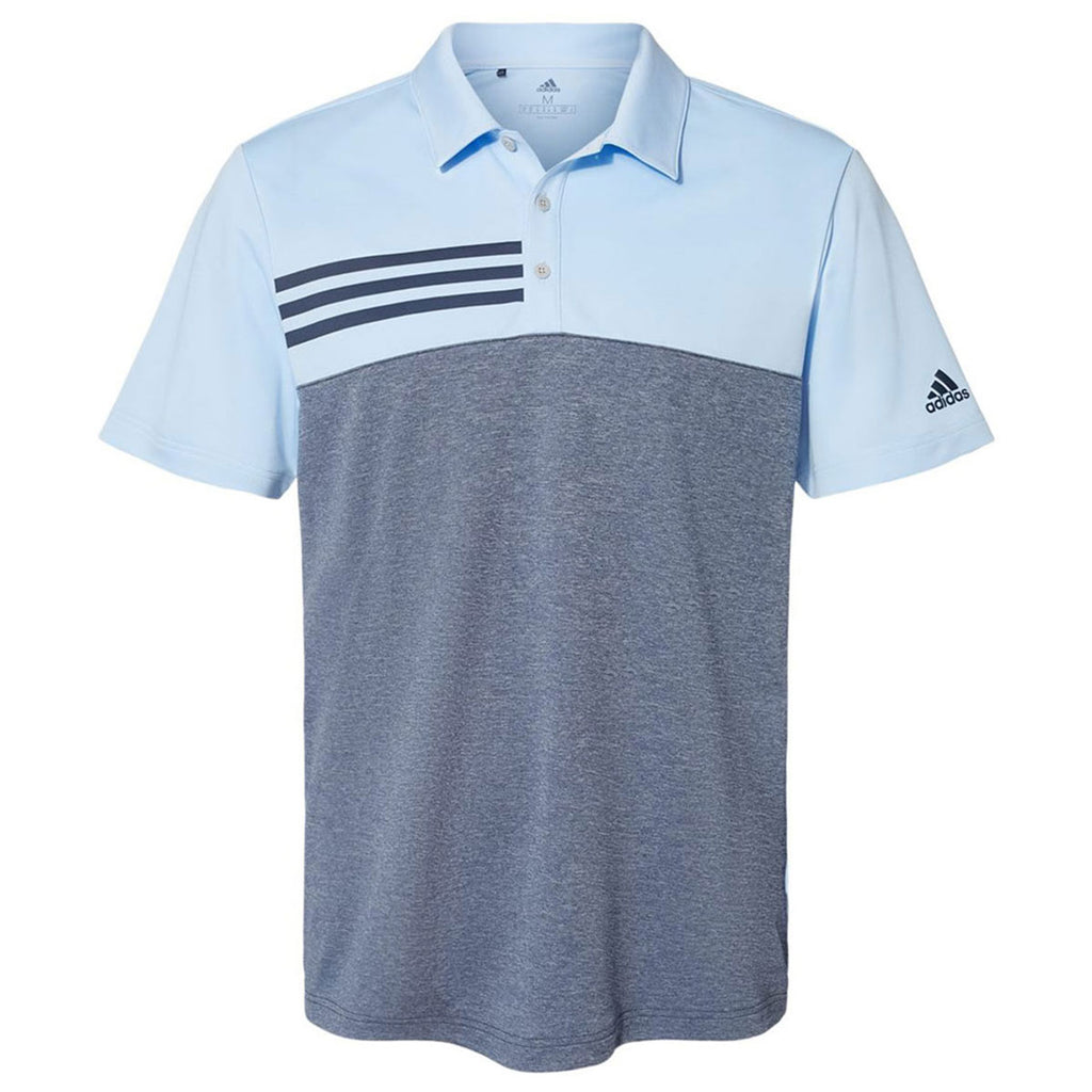 adidas Men's Glow Blue Heather/Collegiate Navy Heather Heathered Colorblock 3-Stripes Sport Shirt