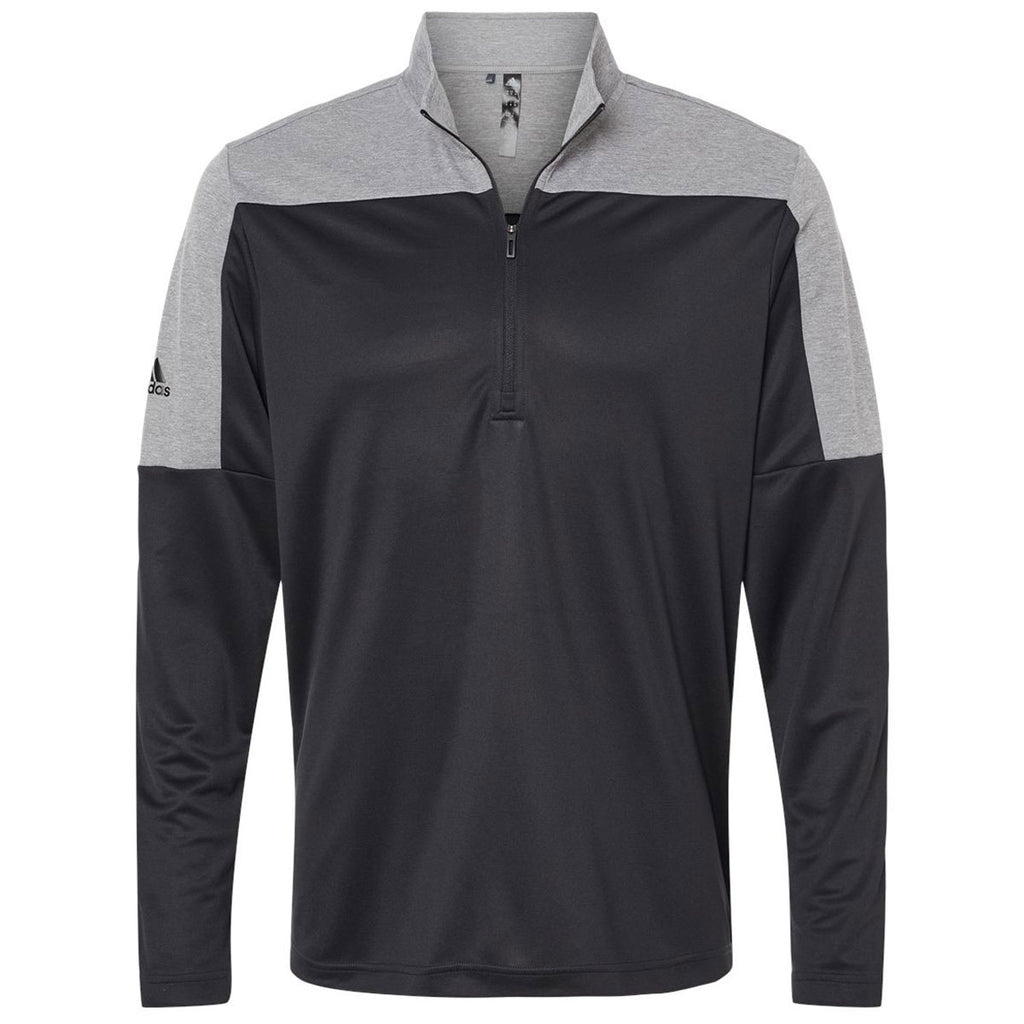 The adidas Men's Black/Grey Three Melange Lightweight Quarter Zip Pullover will show off your company's custom logo or design like no other hooded sweatshirt can. The two-toned design will set your team apart in the best way possible. Special moisture-wicking fabric makes it great for athletes or anyone with an active lifestyle.