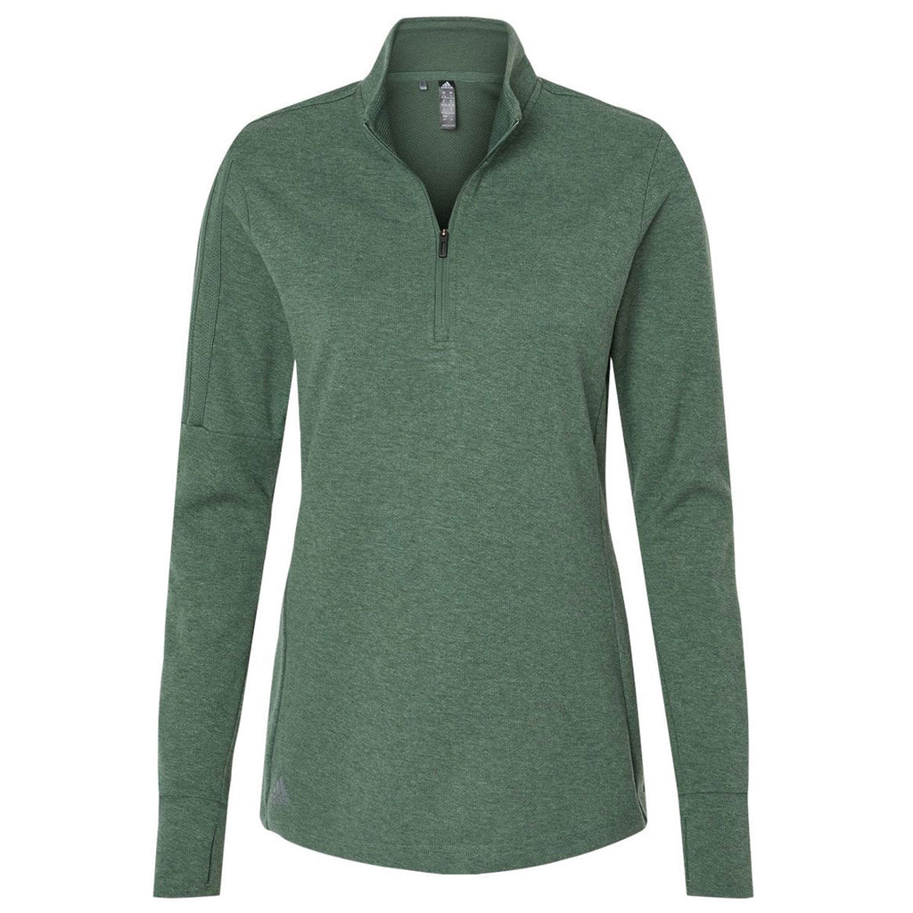 Women who love getting active will appreciate the functionality of the adidas Women's Green Oxide Melange 3-Stripes Quarter Zip Pullover. Made from a special moisture-wicking fabric, this hooded sweatshirt features a sleek silhouette and a variety of on-trend color options. All it's missing is your company's custom logo or design.