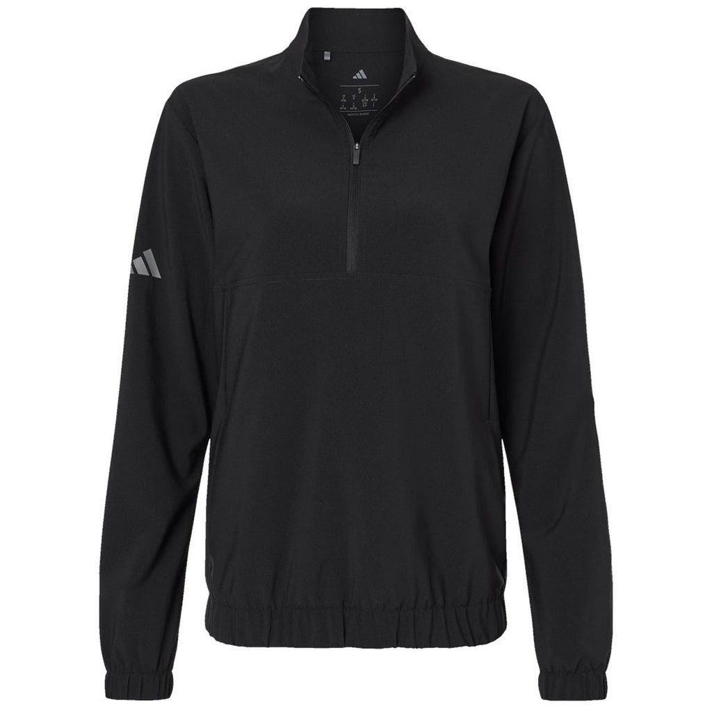The Adidas Women's Black Woven Half-Zip Pullover blends sporty structure with custom lightweight coverage. Whether you're outfitting a corporate retreat or refreshing your branded apparel, this custom layer is sleek, water-repellent, and flattering in fit-perfect for cool days and sharp looks.This product can only ship within the United States.