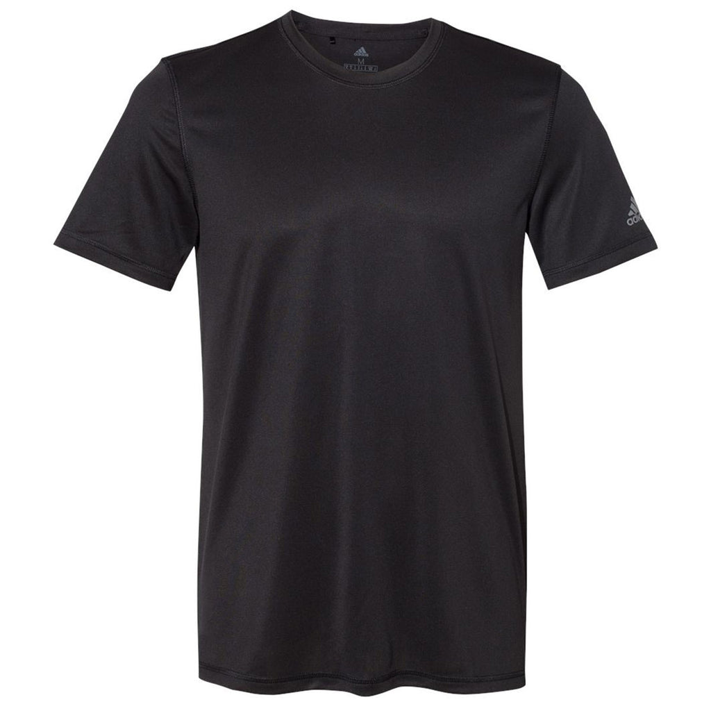 Stay comfortable and look great in a screen print Adidas Men's Black Sport T-Shirt. Ideal for the gym, a day with the family, or a quick round of golf, this 100% recycled polyester pique tee is good for the environment and great for you with UPF 50+ protection. Add a company logo to use these as employee apparel that will stand up to hard work or a corporate logo to use for corporate events as a way to showcase your company or organization. The crewneck design with open hem sleeve is designed for all day comfort whether worn alone or layered for warmth.