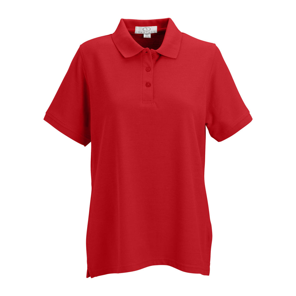 Vantage Women's Red Soft-Blend Double-Tuck Pique Polo
