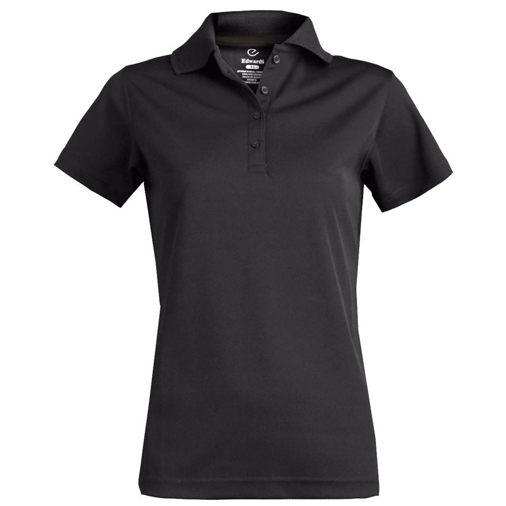 Hit the back nine in this custom Edwards Women's Steel Grey Hi-Performance Mesh Short Sleeve Polo. Made from 100% polyester, this short sleeve mesh weave polo with feminine silhouette wicks moisture from your body when you are working hard. Ideal as employee apparel or even corporate uniforms for those who need them, these polos will carry your corporate embroidery with style and pride. The lightweight fabric offers an antimicrobial shield and soil release so you can always look your best, even when working outdoors. The snag, fade, shrink, and wrinkle resistant fabric can be machine laundered for easy care and to have available for new employees.
