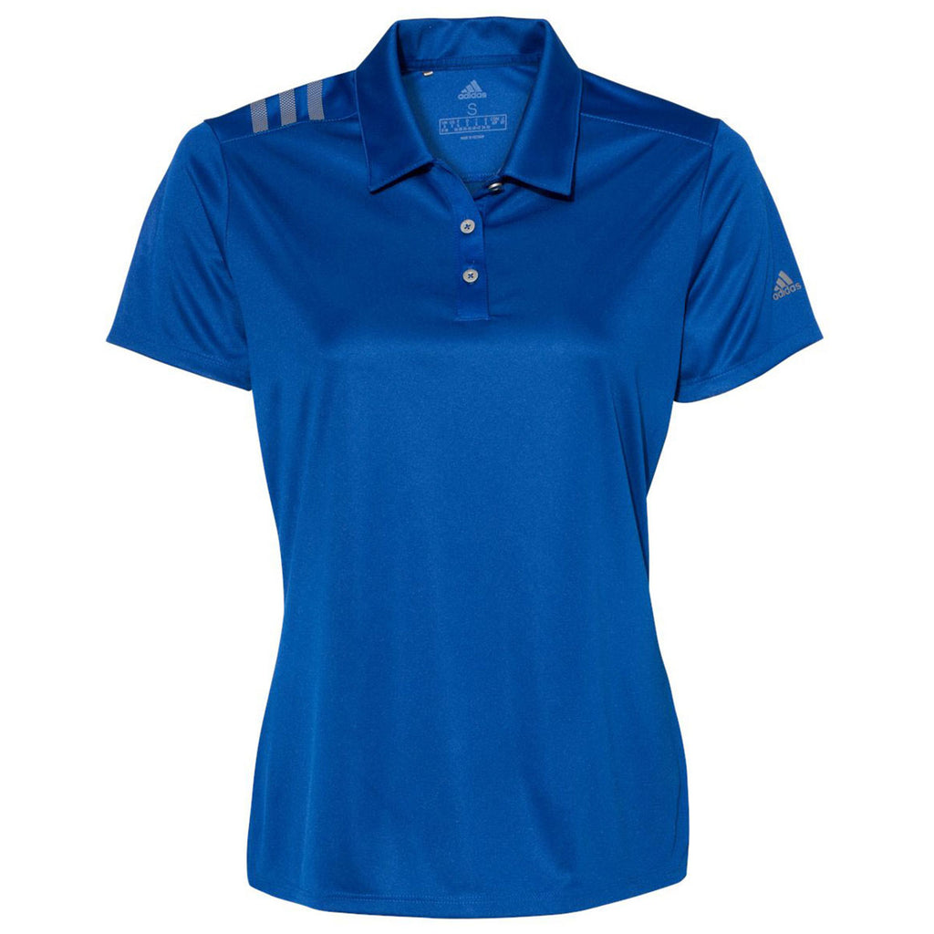 adidas Women's Collegiate Royal/Grey 3 Stripe Shoulder Sport Polo