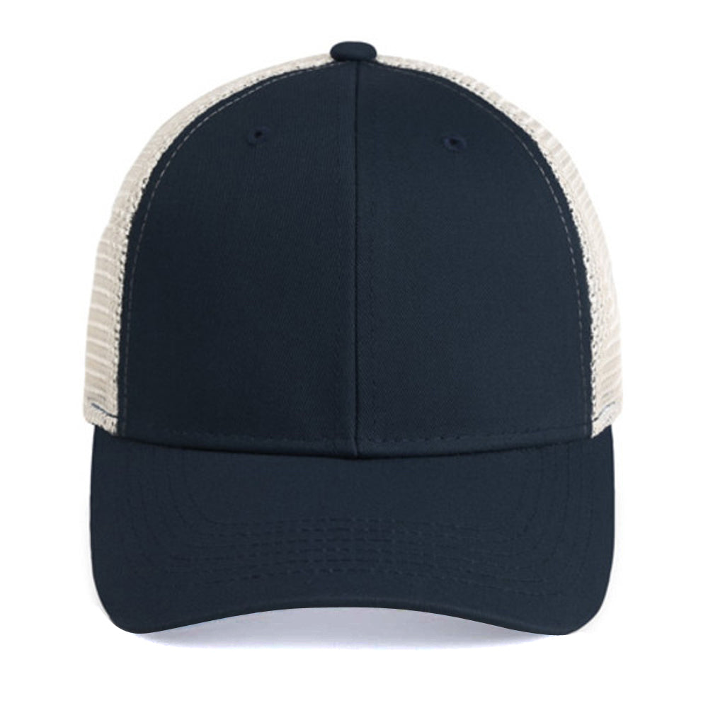 - Garment washed cotton twill front and ultra-soft polyester mesh back