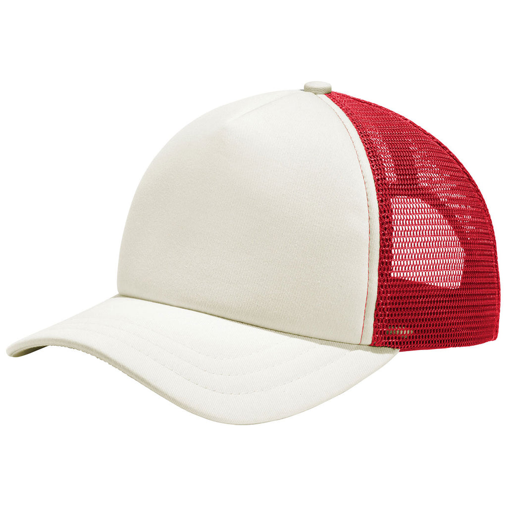 Port Authority Ivory/Red 5-Panel Twill Foam Trucker Cap