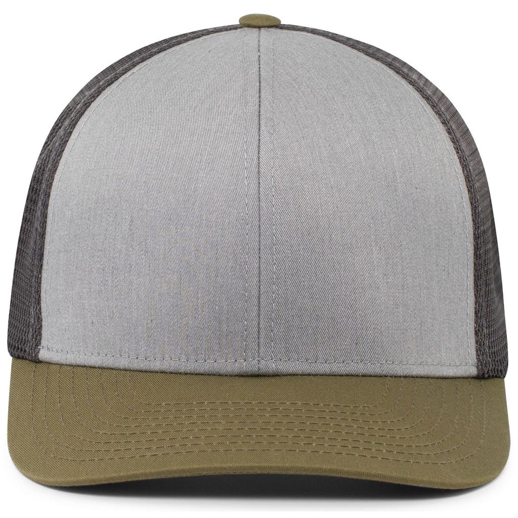 Pacific Headwear Heather Grey/Light Charcoal/Moss Green Fusion Trucker Cap