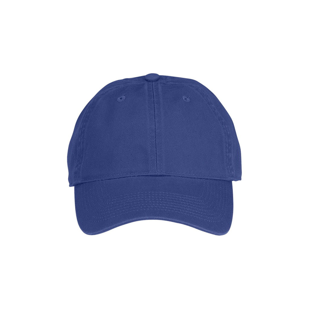 You will love the unsurpassed relaxed fit provided by the embroidered Vantage Men's Royal Clutch Bio-Washed Unconstructed Twill Cap. Cotton twill not only ensures supreme comfort, the material also resists rips and tears to give you a go to cap for corporate softball games. After every game, mingle with your professional peers by displaying the corporate logo you added on the large imprint area. The washed twill cap presents an old school appearance worthy of a Hall of Famer. One size for the cap fits most heads, which makes the cap the ultimate company gift for your team of high achievers.Highlights