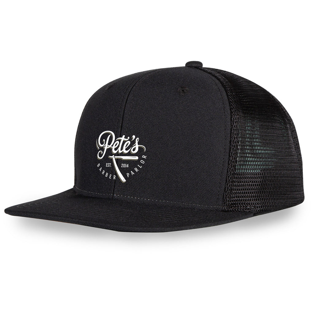 Choose a corporate logo for the Merrimack Hat Co. Black Axel Trucker cap. Available in a range of color combinations. The firm brim style will protect you from the sun, whether out on a construction site, watching the big game, or just enjoying the Great Outdoors. Perfect as a promotional item. Made in a one-size-fits-most adjustable design.
