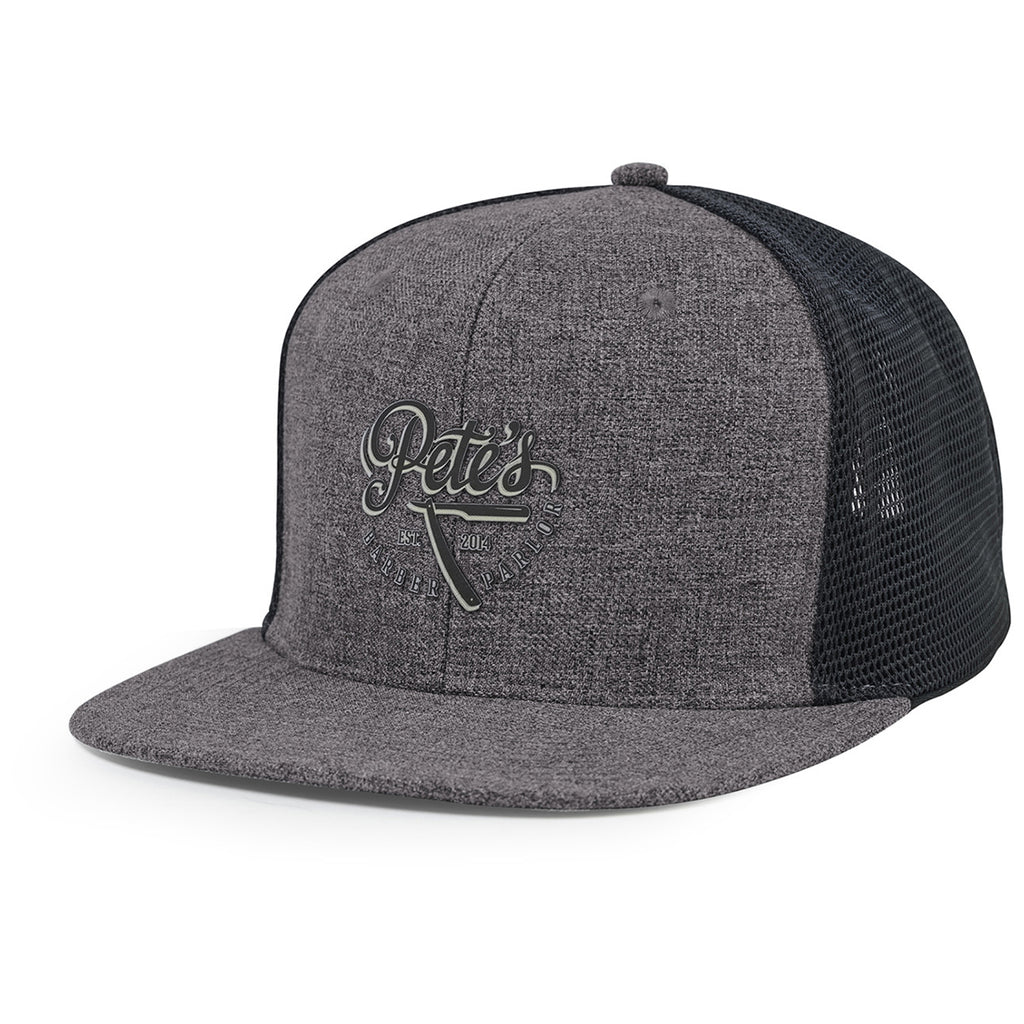 Choose a corporate logo for the Merrimack Hat Co. Heather Grey/Black Axel Trucker cap. Available in a range of color combinations. The firm brim style will protect you from the sun, whether out on a construction site, watching the big game, or just enjoying the Great Outdoors. Perfect as a promotional item. Made in a one-size-fits-most adjustable design.