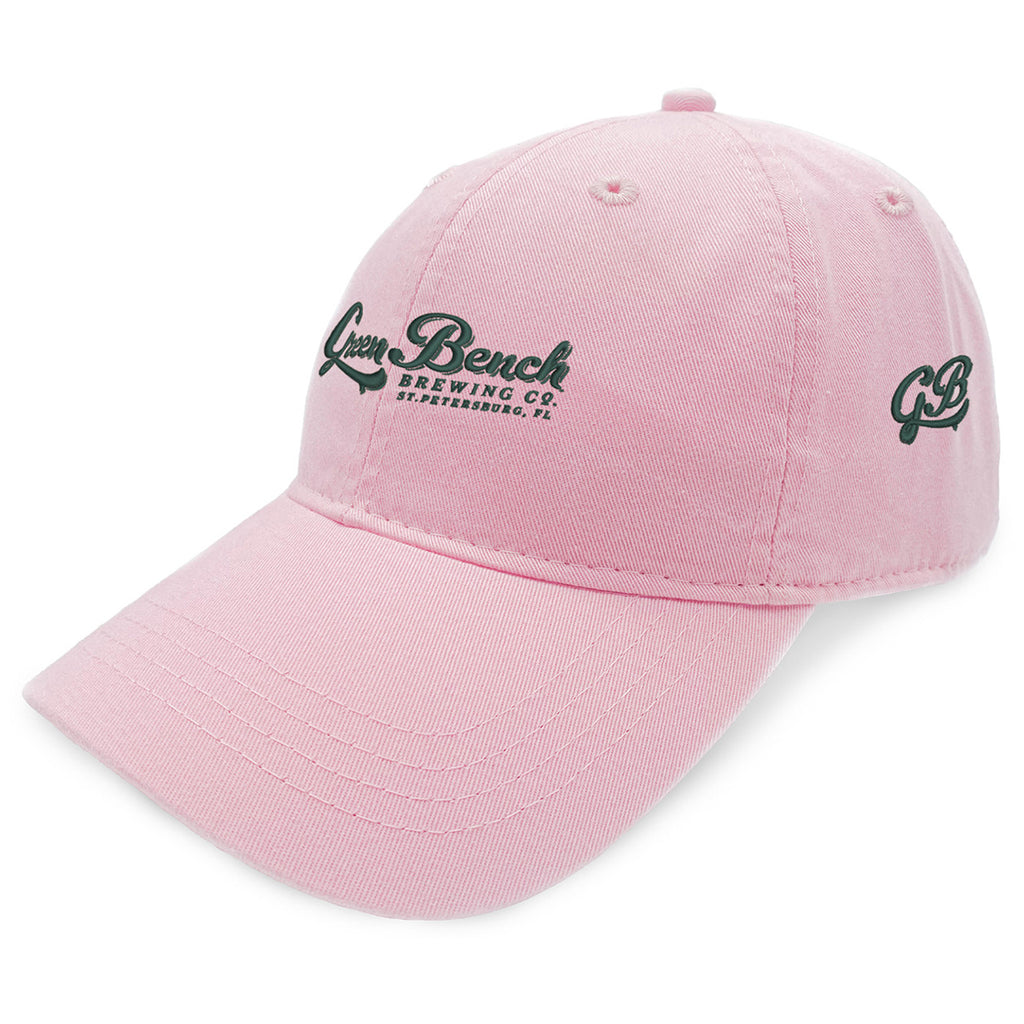 Merrimack Hat Co. Pink Cooper Cap with a custom logo is a creative way to showcase your organization, style, or logoed apparel line. Great for wearing while golfing, playing ball, or just hanging out, this hat has unstructured panels, a curved brim, and a low crown. The self-fabric strap with antique brass buckle closure allows for a one-size-fits-most design.
