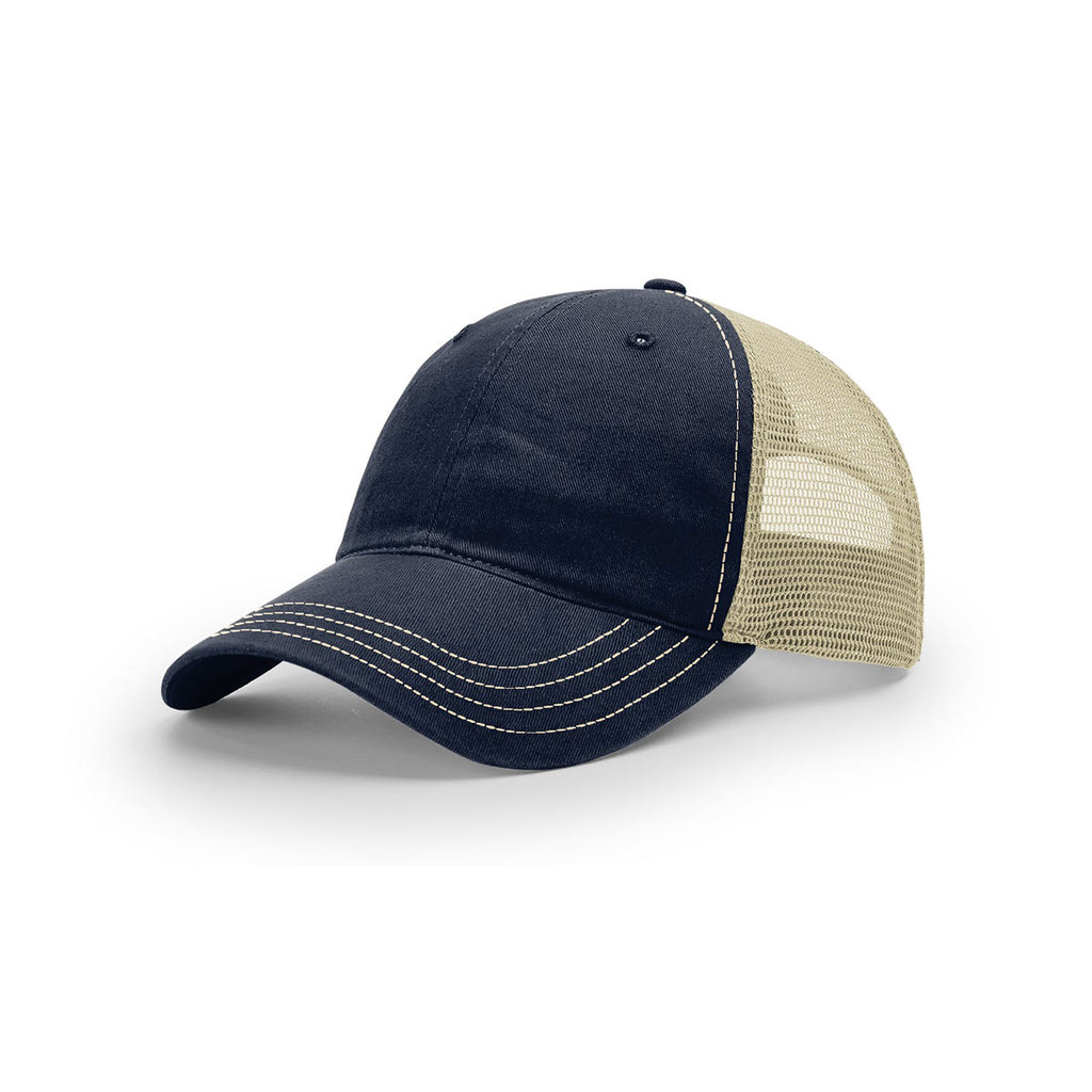 Richardson Navy/Khaki Mesh Back Split Garment Washed Trucker Hat