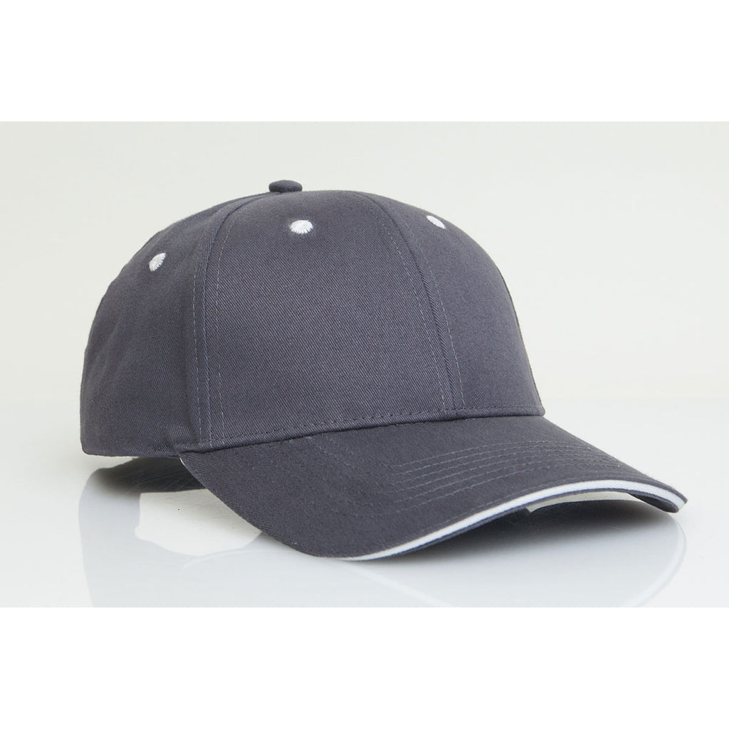 Pacific Headwear Graphite/White Velcro Adjustable Brushed Twill Cap With Sandwich Visor