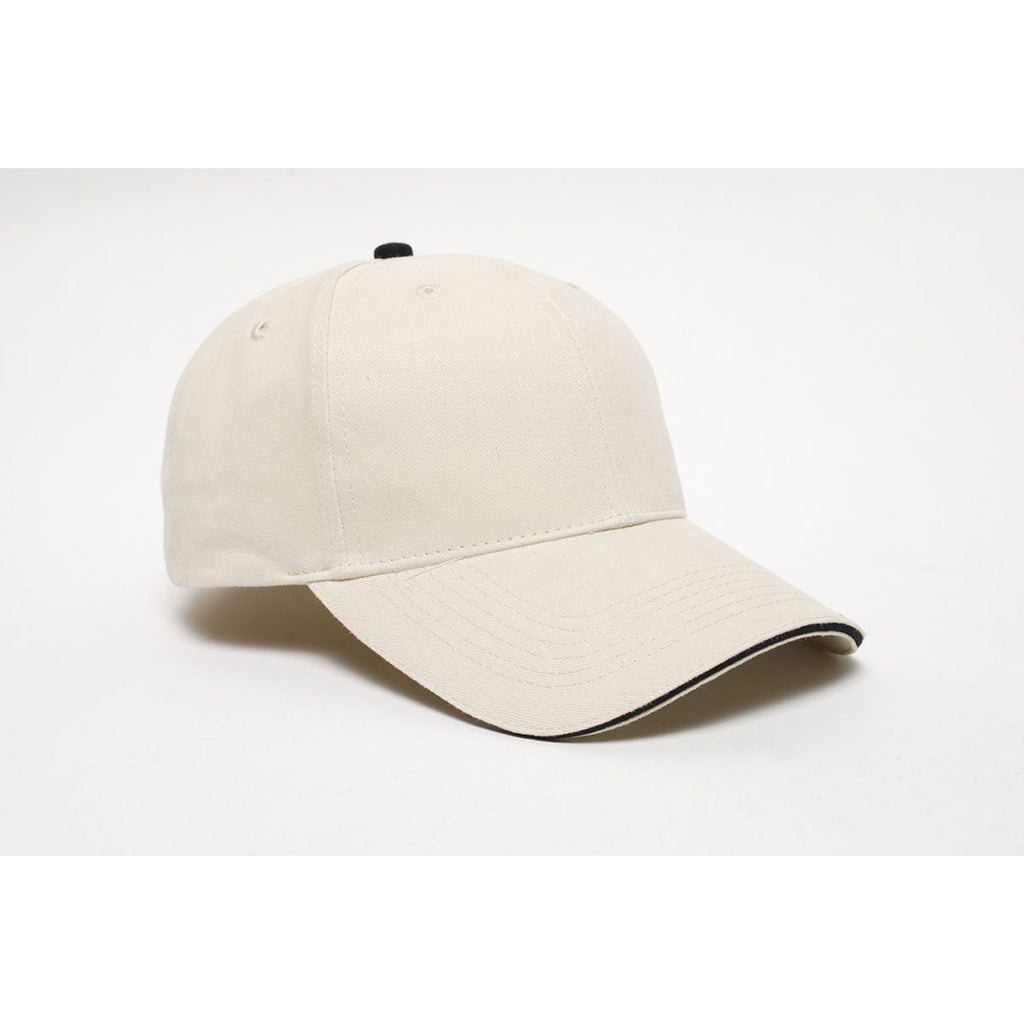 Pacific Headwear Khaki/Navy Velcro Adjustable Brushed Twill Cap With Sandwich Visor