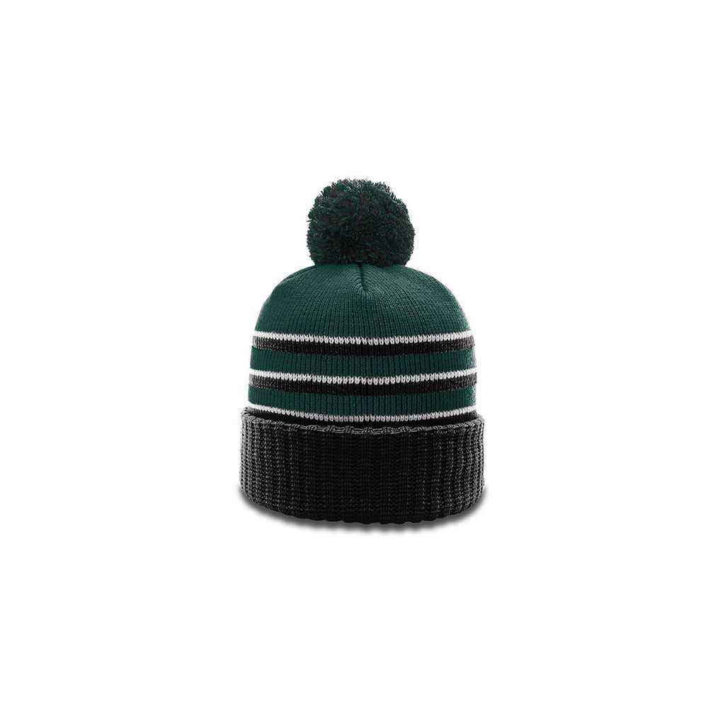 Richardson Dark Green/Black/White Pom Beanie with Cuff