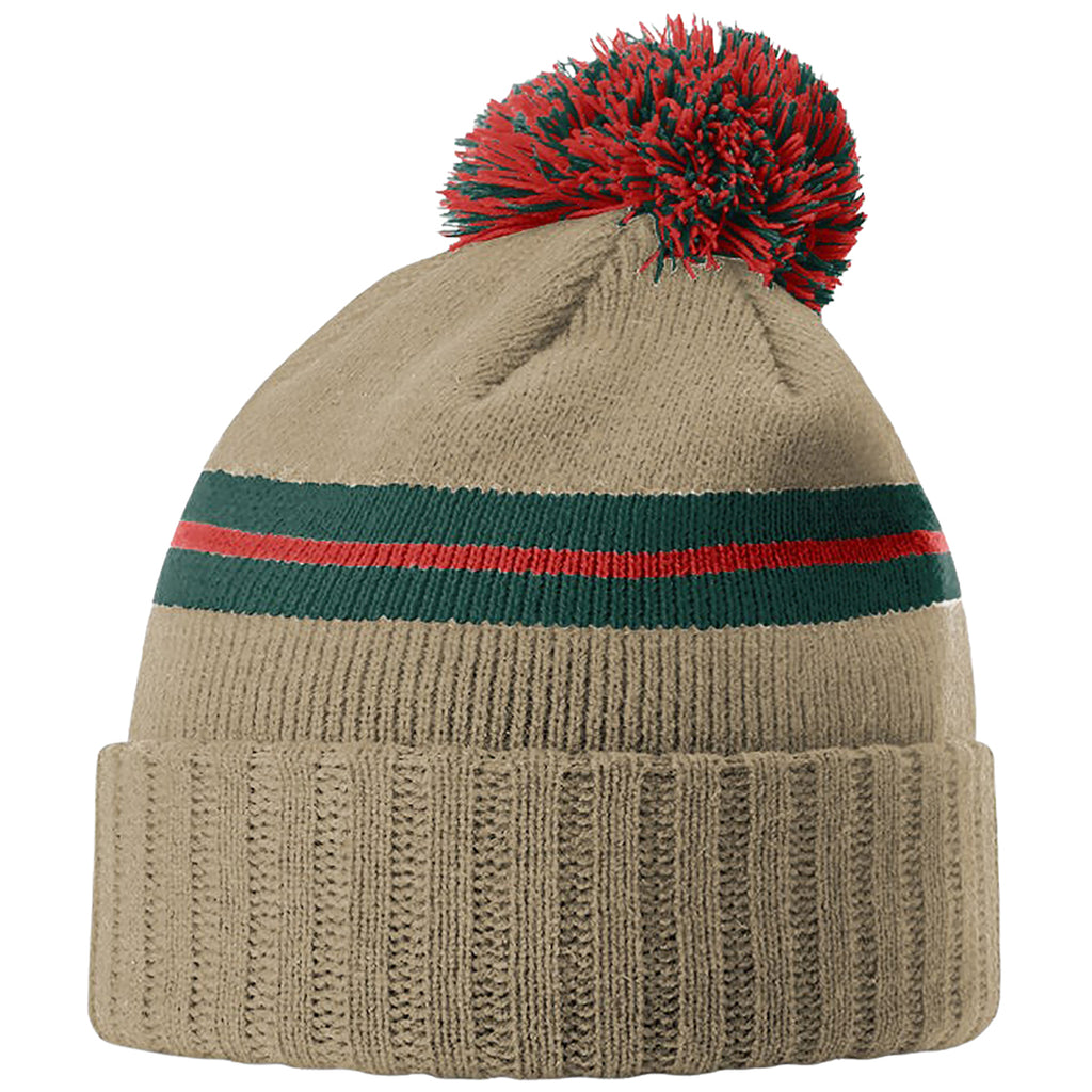 Richardson Tan/Dark Green/ Deep Red Short Pom Beanie