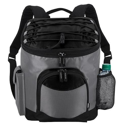 Strap on the 48-Hour Koozie Black Kooler Backpack to reduce the amount of time you spend at the grocery store. Walk down every aisle and place items inside of the spacious main compartment. The heat-sealed PEVA liner ensures all of your cold food and beverages remain cold until you return home. Store smaller items inside of the front zippered pocket and quickly retrieve your phone from the convenient side pocket. The padded shoulder straps adjust to balance heavy loads, which alleviates pressure on your back and shoulders. Add your company logo to the backpack to get the word out about your business in the community.