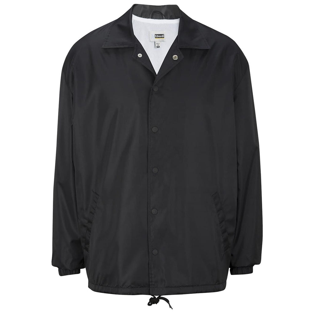 Edwards Men's Black Coach's Jacket with a custom logo is a great way to support your coach and team. The snap button front means this jacket is easy to take off and put on, even in the middle of the big game. Add a team name or player name and wear it in the stands to show support. Place an order right away.Highlights