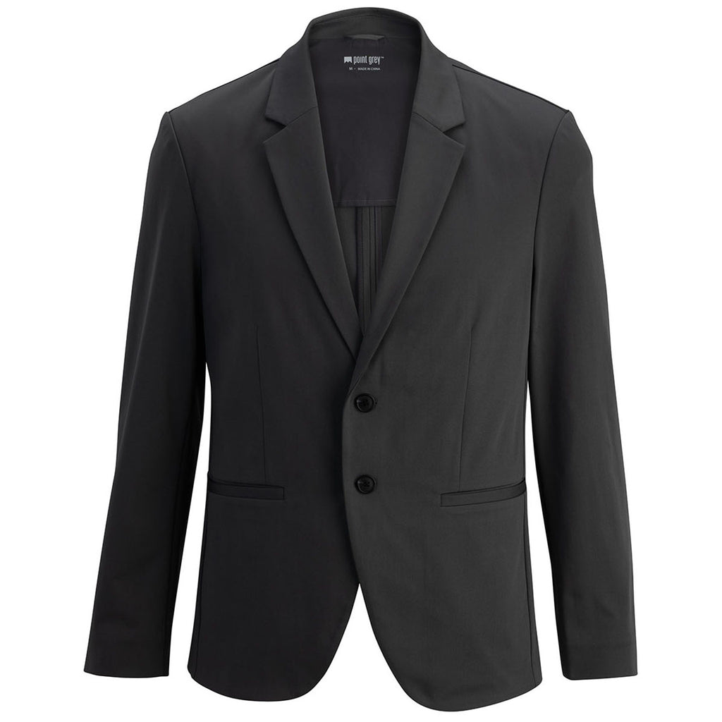 Choose a custom logo for the Edwards Men's Forged Iron Point Grey Blazer to enjoy an upscale look that is ready to be front and center. Performance and luxury come together in this button-front blazer that can go from work to real life with ease. Add your corporate logo to create a uniform for hospitality staff, the sales force, or the office.Highlights
