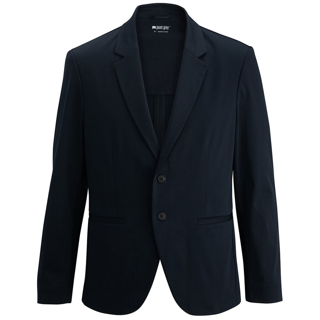 Choose a custom logo for the Edwards Men's Navy Agate Point Grey Blazer to enjoy an upscale look that is ready to be front and center. Performance and luxury come together in this button-front blazer that can go from work to real life with ease. Add your corporate logo to create a uniform for hospitality staff, the sales force, or the office.Highlights