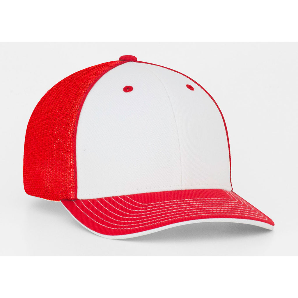 The logoed Pacific Headwear White/Red Universal Fitted Trucker Mesh Cap makes the ideal corporate gift for savvy managers who want to impress potential clients. Whenever you invite customer prospects to the office or plant, add a custom logo that leaves a positive impression on your guests. The comfortable cap contains a spandex Trucker mesh back to stretch and fit most size heads. Air circulates through the durable mesh to keep you cool under pressure. M3 performance fabric front panels create a structured appearance that leaves no doubt who is in charge. Logoed corporate apparel helps increase sales by getting the word about your company.Highlights
