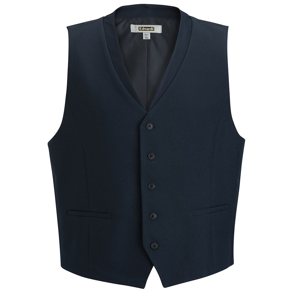 Add embroidery to the Edwards Men's Dark Navy Ottoman Trim Vest to create an upscale look that will function in the most professional of settings. The 5-button closure vest is ideal for layering under a suit jacket or wearing as part of a complete uniform. Add a corporate logo to show affiliation with a company or cause in a unique way. Place an order right away.Corresponding Women's Style: Edwards Women's Dark Navy Ottoman Trim Vest