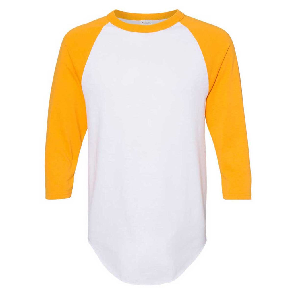 Augusta Sportswear Men's White/Gold Three-Quarter Raglan Sleeve Baseball Jersey