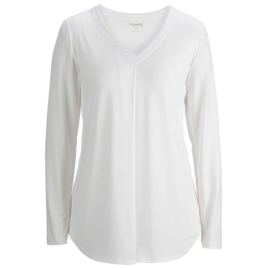This tailored blouse from Edwards is a refined option for organizations looking to elevate their uniform program. Designed with comfort and elegance in mind, it features pleated details and soft fabric suitable for extended wear. Whether used for office staff, trade shows, or customer-facing roles, it provides a professional look.Highlights