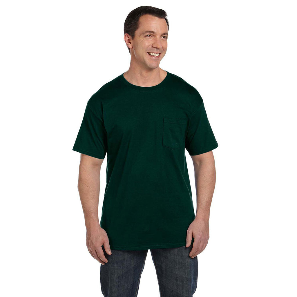 Custom embroidery meets classic design in the Hanes Men's Deep Forest 6.1 oz. Beefy-T with Pocket. Everyone enjoys wearing a well-made, soft cotton t-shirt. Having a closet filled with custom embroidery t-shirts makes it all the more special. Create a batch of custom pocket tees with your company or team name to wear, display, or give away at a trade show or recruiting event. Perfect for layering with other Hanes products or to wear alone, the simplicity makes this t-shirt fully customizable in 22 different colors. The ways in which these t-shirts can be used is only limited by your imagination, the addition of the chest pocket also makes them functional in carrying the small important items you may need. How many will you order?Highlights