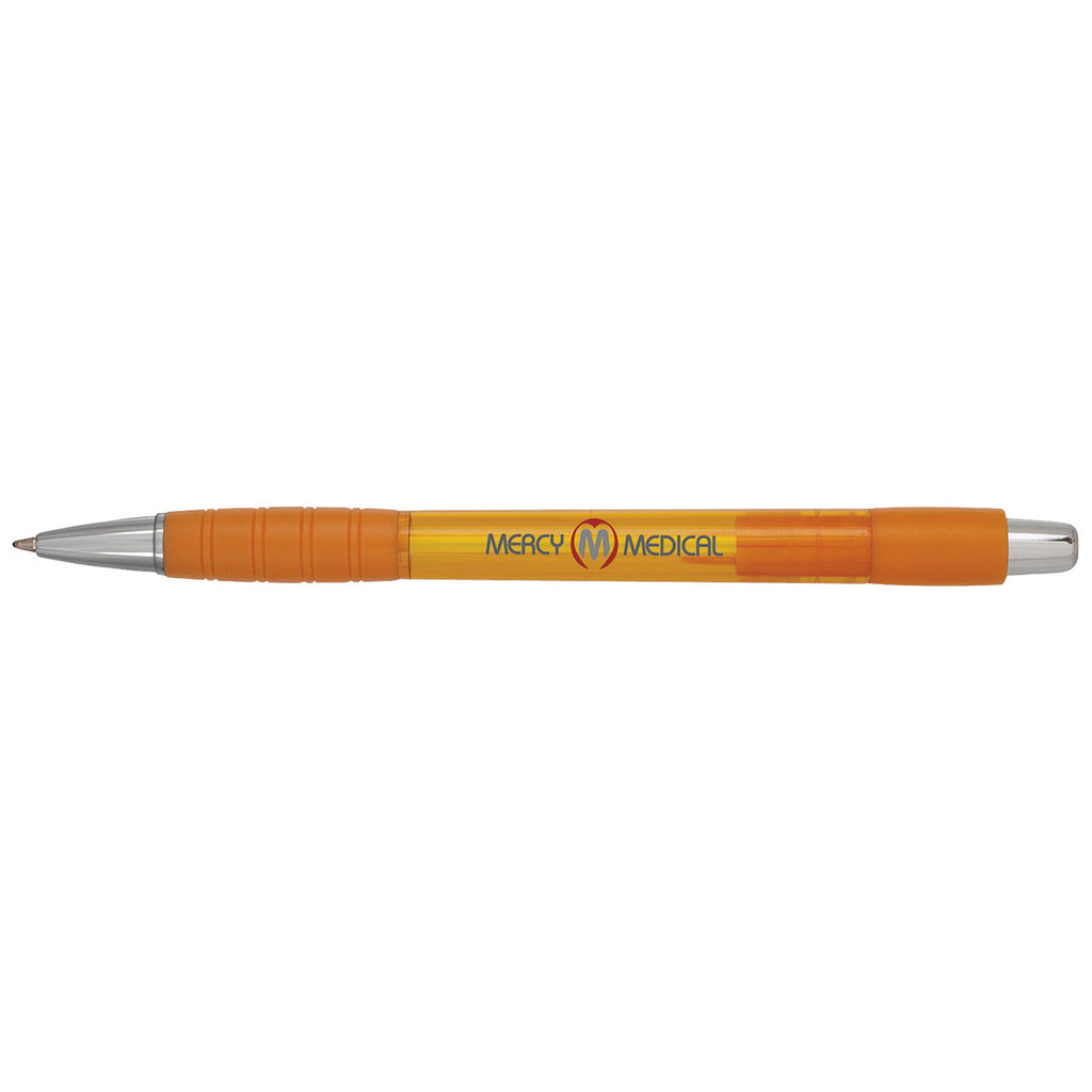 Promote your brand with a custom Koozie Group Orange with Blue Ink Element Pen. Pens are a daily-use item, and having your brand prominently displayed helps people remember who you are. These translucent pens are fun to use and look at making them perfect as part of gift baskets, trade shows, and for general use. Place an order today.The minimum order for this product is 500 pieces.