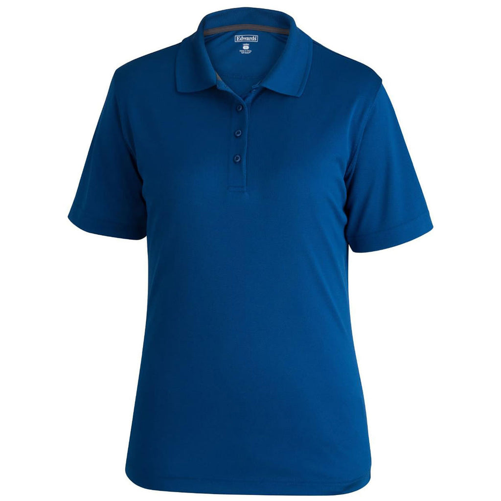 Create your own look with a custom Edwards Women's Royal Airgrid Snag-Proof Mesh Polo made of 100% polyester performance knit. A bit heavier than other polos, this short sleeve option is tough enough to stand up to whatever your day holds. Design a company logo to use the polo as employee apparel that allows for all day wear that can be industrially laundered. Snag proof, moisture wicking, antimicrobial finish and UV protection means that work or play, this polo is ready. A custom logo allows the fashionable polo to be added to your logoed apparel line with ease.Highlights