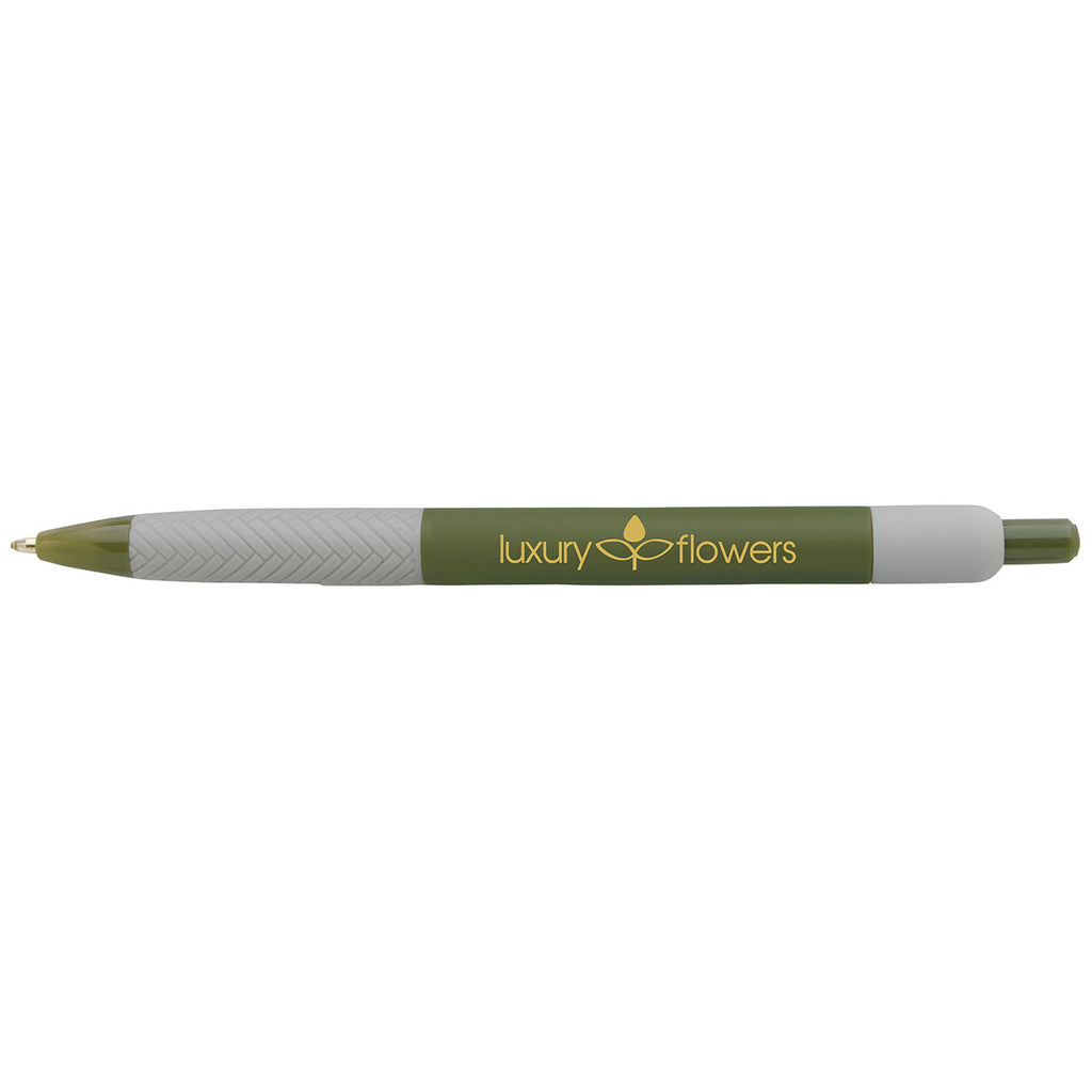 A custom Souvenir Olive Green Herringbone RABS Pen combines sophistication and functionality in one stylish writing tool. Its herringbone pattern gives it a unique, upscale appearance, making it perfect for business events, client meetings, or corporate gifts. Smooth ink flow and a comfortable grip ensure a pleasant writing experience, while the option for branding makes it a great promotional item.The minimum order for this product is 250 pieces.