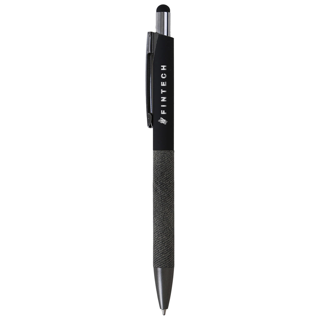 Be environmentally friendly with a custom Hub Pens Charcoal Grey Ecometal Denim Stylus. This eco-conscious pen is made of recycled aluminum and paper with a demin texture on the bottom barrel. The fashion-forward colors will draw attention as you share these promotional pens with clients, friends, and family. Place an order today.The minimum order for this product is 100 pieces.