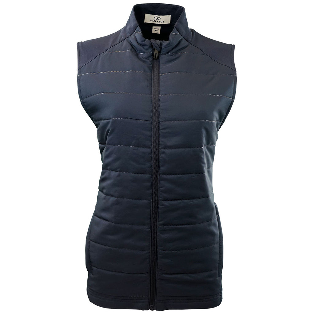 Choose your embroidery for the Vantage Women's Navy Ninja Vest to create a comfortable and functional look that is ready for adventure. The quilted vest is ideal for hiking, biking, or the morning commute. The full zip front makes this easy to layer over your favorite long-sleeve tee or sweater as needed. Order today.Corresponding Men's Style: Vantage Men's Navy Ninja Vest