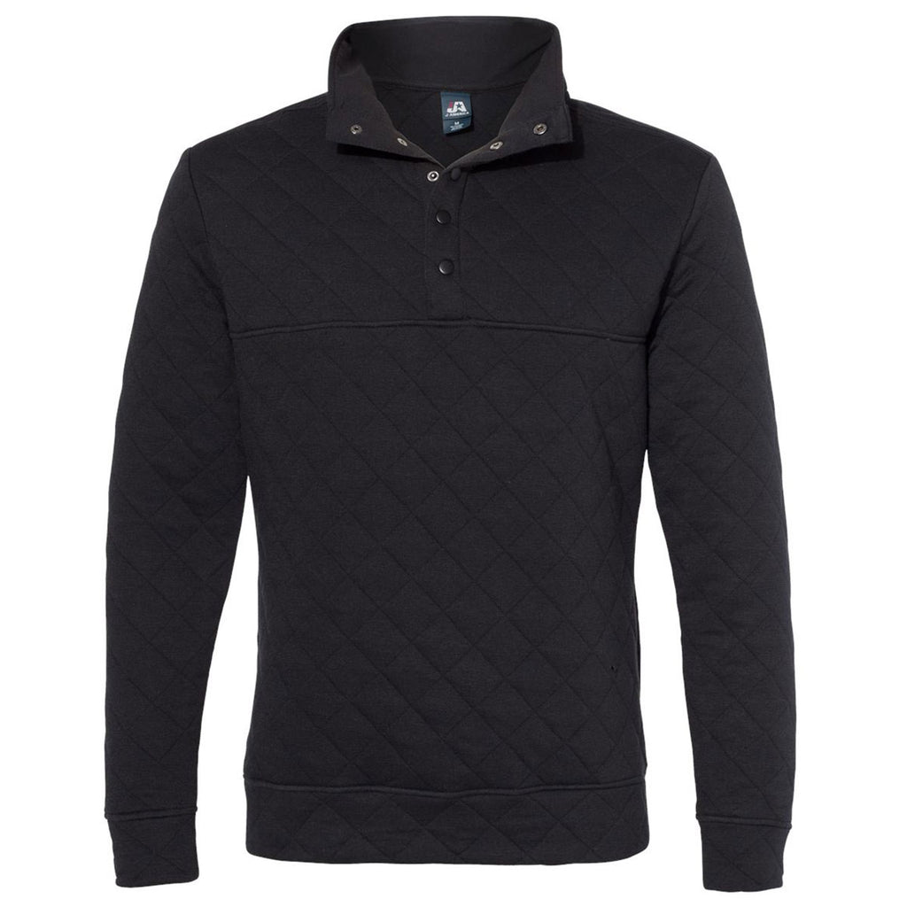 Show up in style in a J. America Men's Black Quilted Snap Pullover with added embroidery. This midweight quilted pullover is fashion forward and fun with a poplin snap placket. Made of a polyester rich cotton quilted jersey blend it is both fun and functional. Add a corporate logo to use as a sales item or a custom embroidery to give as employee gifts that can be enjoyed as the weather gets chilly. Easy to layer with a tee, tank, or long sleeve tee, this pullover is a must have for most wardrobes. Place an order today to make sure these are always in stock.