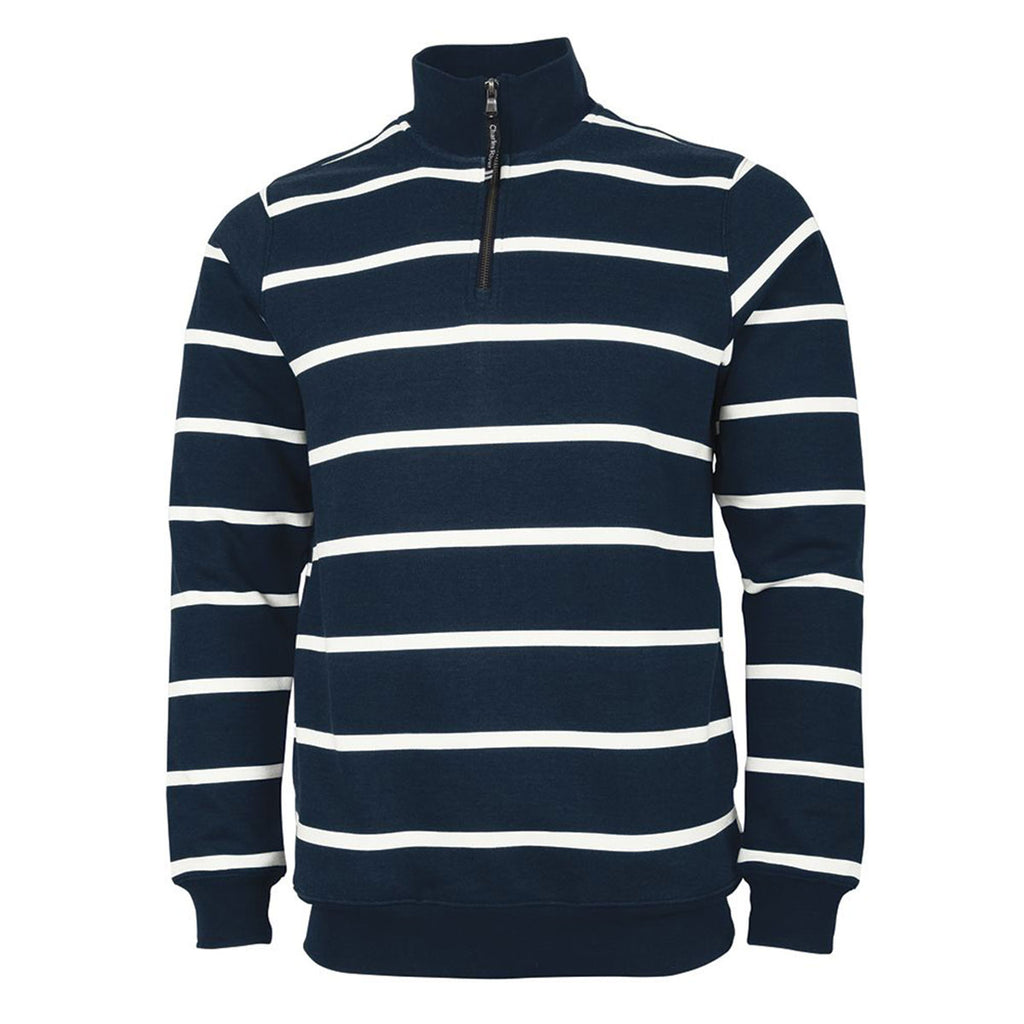 The Charles River Women's Navy/white Stripe Crosswind Quarter Zip Print Sweatshirt is sharp custom clothing that can represent your company well with the addition of your logo. Workers in various roles can wear this logoed apparel as part of a company uniform. The horizontal stripes can help draw the eye to your logo, which will help promote your company name. For even more brand-name exposure, you could sell this apparel to the general public if your business is widely known and your logo is universally recognized. It's also a nice promotional item to hand out at recruiting events if you want a little edge when trying to attract top talent.Highlights