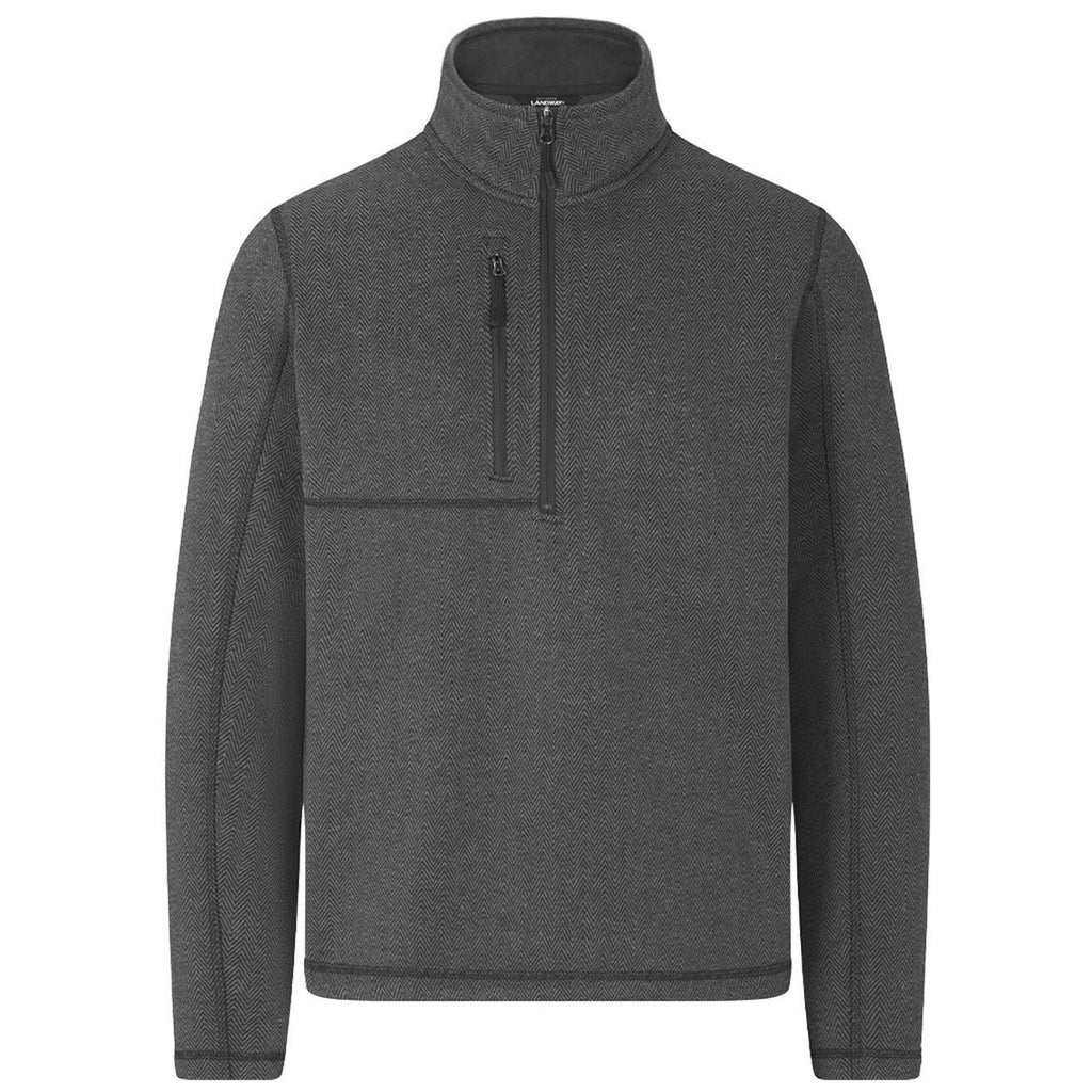 Landway Men's Grey Kodiak Herringbone Quarter-Zip Sweater-Knit Fleece