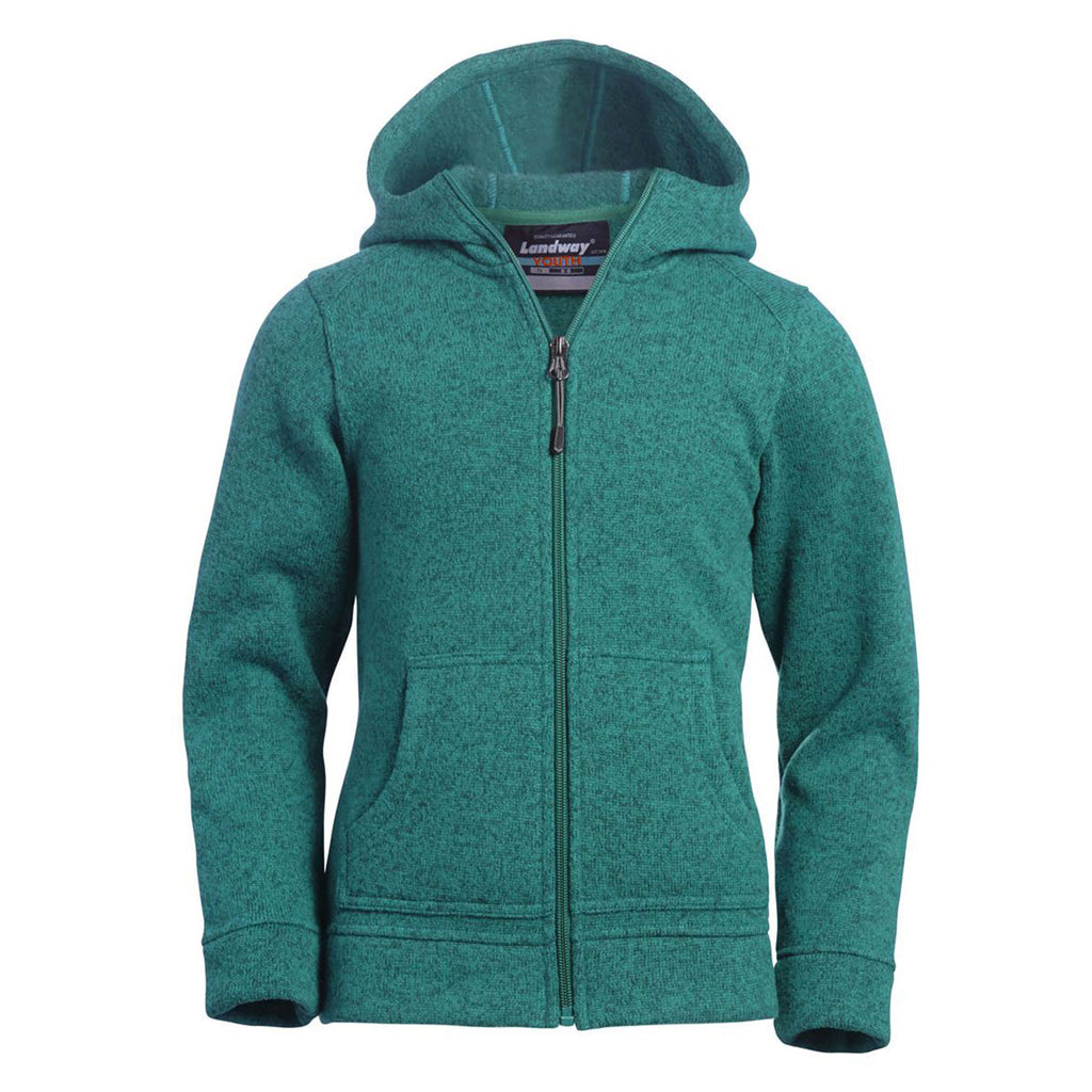 Every child needs hooded outerwear to protect from the rain and cold, and the Landway Girl's Heather Teal Ashton Sweater-Knit Fleece is the perfect custom apparel to fill that need. Those who wear this jacket might be too young to work for your company, but you could order a supply with your company's custom logo so that your employees' children can dress like mom and dad. Better yet, you could hand these out as employee gifts to help your workers keep up with the clothing needs of their ever-growing children. Your people will appreciate it, and you'd be introducing your company name to a new generation.Highlights