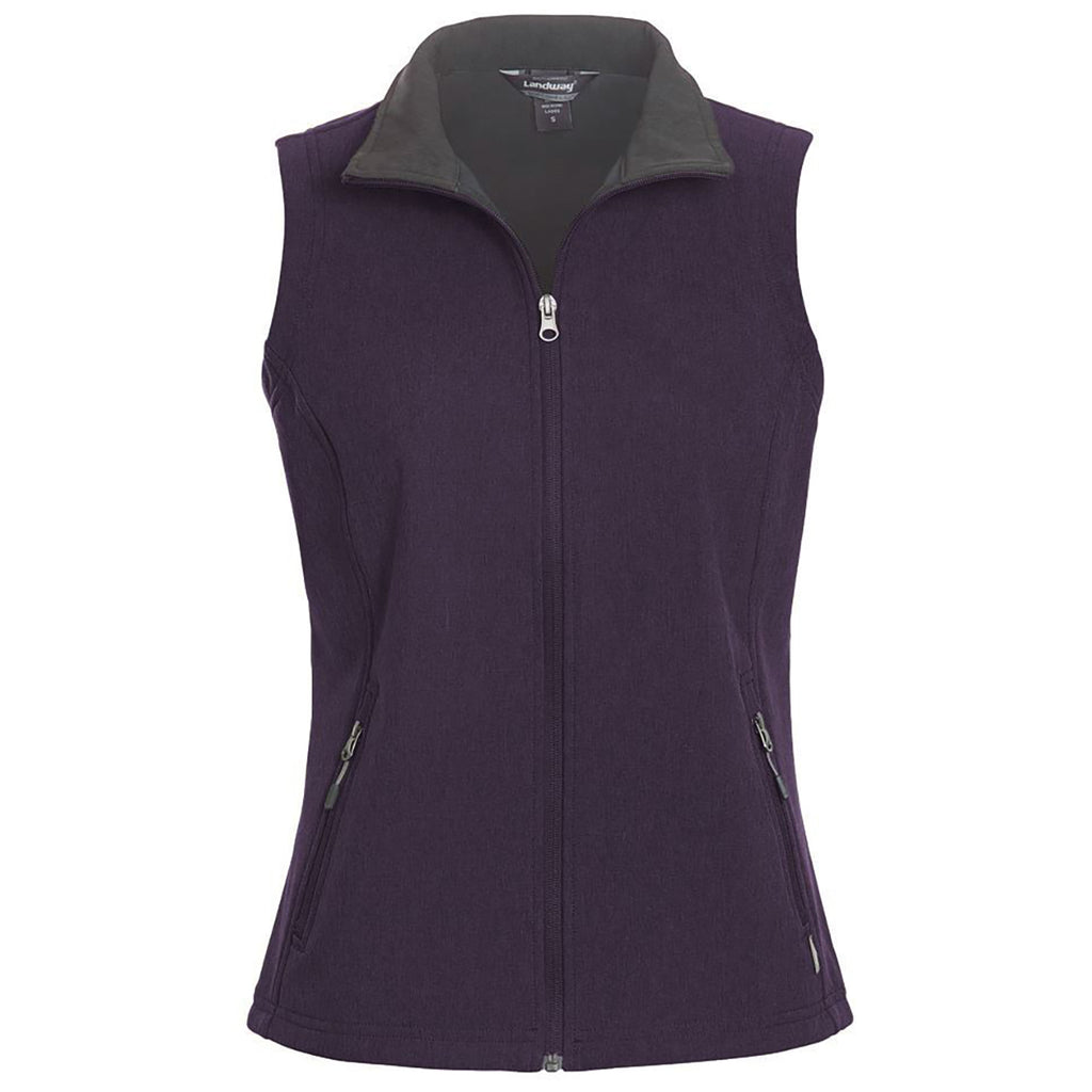 The company logoed Landway Women's Heather Eggplant Neo Soft Shell Vest includes smooth microfleece that produces another layer of cold weather insulation. Wear the vest as an inner layer during cold weather camping trips and never feel the discomfort caused by prolonged exposure to frigid temperatures. Water resistant properties allow you to spend considerable time outdoors during a snow storm to shovel the white stuff. Three layers of bonded polyester never rips and tears to give you long lasting durability. Attach your corporate logo to attract the customer prospects you meet at outdoor civic events.Highlights