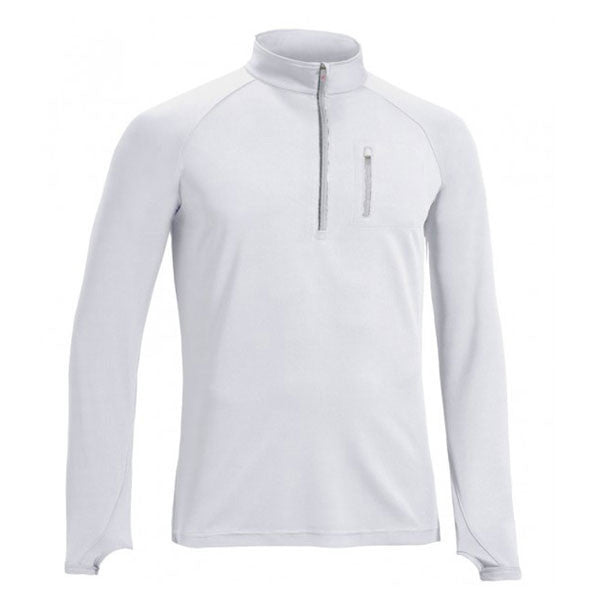 Expert's Expert Men's White Half Zip Run Away Top's half-zip provides the flawless blend of warmth and ventilation. This pullover's smooth seams and modern fit stretch with you to ensure it won't hamper your movements. Reflective detailing enhances night time visibility for a safer walk or run. Thumbholes keep sleeves in place. Crafted from 100% microfiber polyester pk maX. Armed with anti-odor and anti-allergic BodyFreshe technology to control rank post-run smell. Corporate active wear like this shirt rolls out unique opportunity to showcase your company's custom logo artwork or message to prospective and existing business, unify your staff, and promote active lifestyles.The minimum order for this product is 12 pieces.