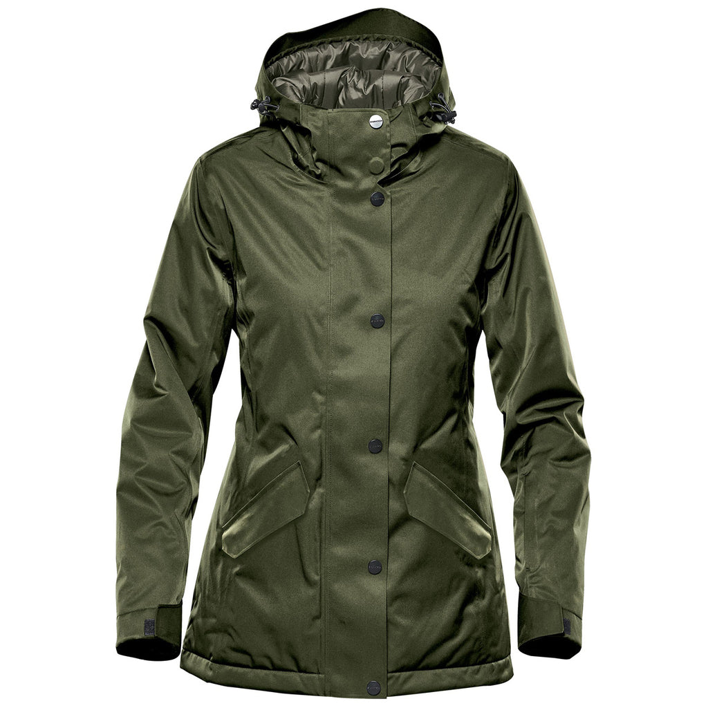 Add a custom logo to the Stormtech Women's Moss Zurich Thermal Jacket for a sleek look that will look good when running errands, on the slopes, or anything in between. Perfect as a custom gift for anyone who has to face inclement weather, this jacket is a perfect choice for extreme weather conditions. The waterproof, breathable jacket offers a face shield, storm flap, and plenty of pockets to keep small items secure and safe. Add a company logo to use as employee gifts for those who work outdoors year-round. Fashionable enough to serve well in urban environments, but great for outdoor adventure.Corresponding Men's Style:Stormtech Men's Moss Zurich Thermal Jacket
