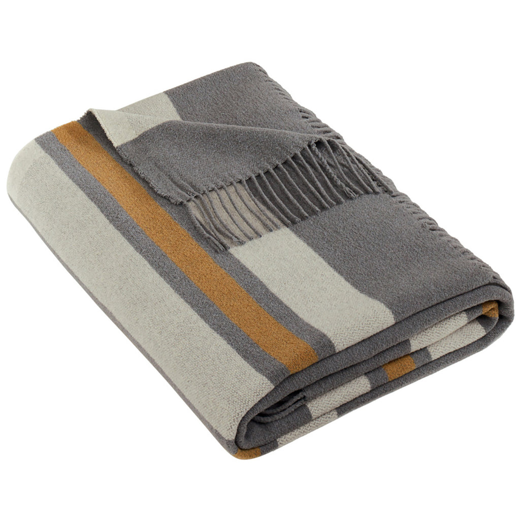 Brooks Brothers Shadow Grey/ Marshmallow/ Tan Heritage Blanket