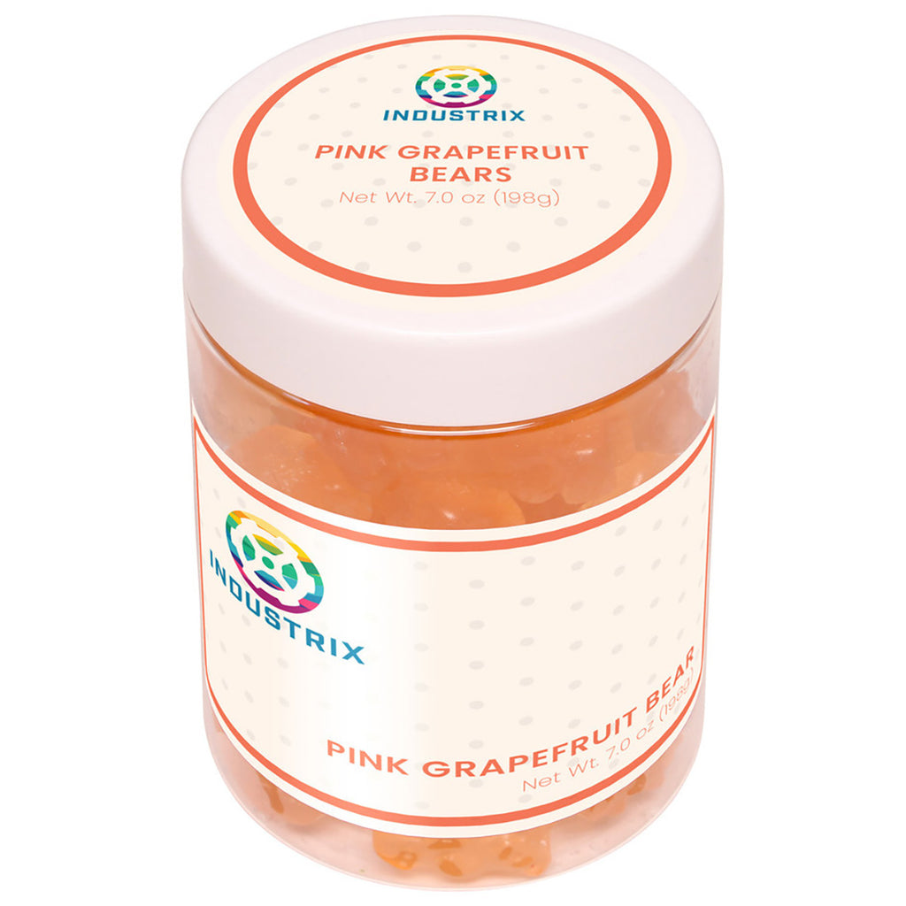 SugarSpot Clear Pink Grapefruit Bears: Large Jar with a custom logo is a treat for the distinguished pallet. These pink grapefruit gummies come in a jar that can be shared or enjoyed alone. Perfect for keeping on your desk at work, drawing people in at a trade show, or sharing as gifts, this is a must-have. Place an order right away.
