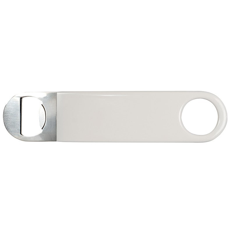 Personalize this custom Jetline White Double Sided Metal Bottle Opener with your company logo and create a unique promotional item for any recruiting event or trade show. This custom bottle opener even comes with a PVC coating for a comfortable grip! The double-sided opener can pop open beer or soft drink bottles in a snap - talk about double-sided benefits!
