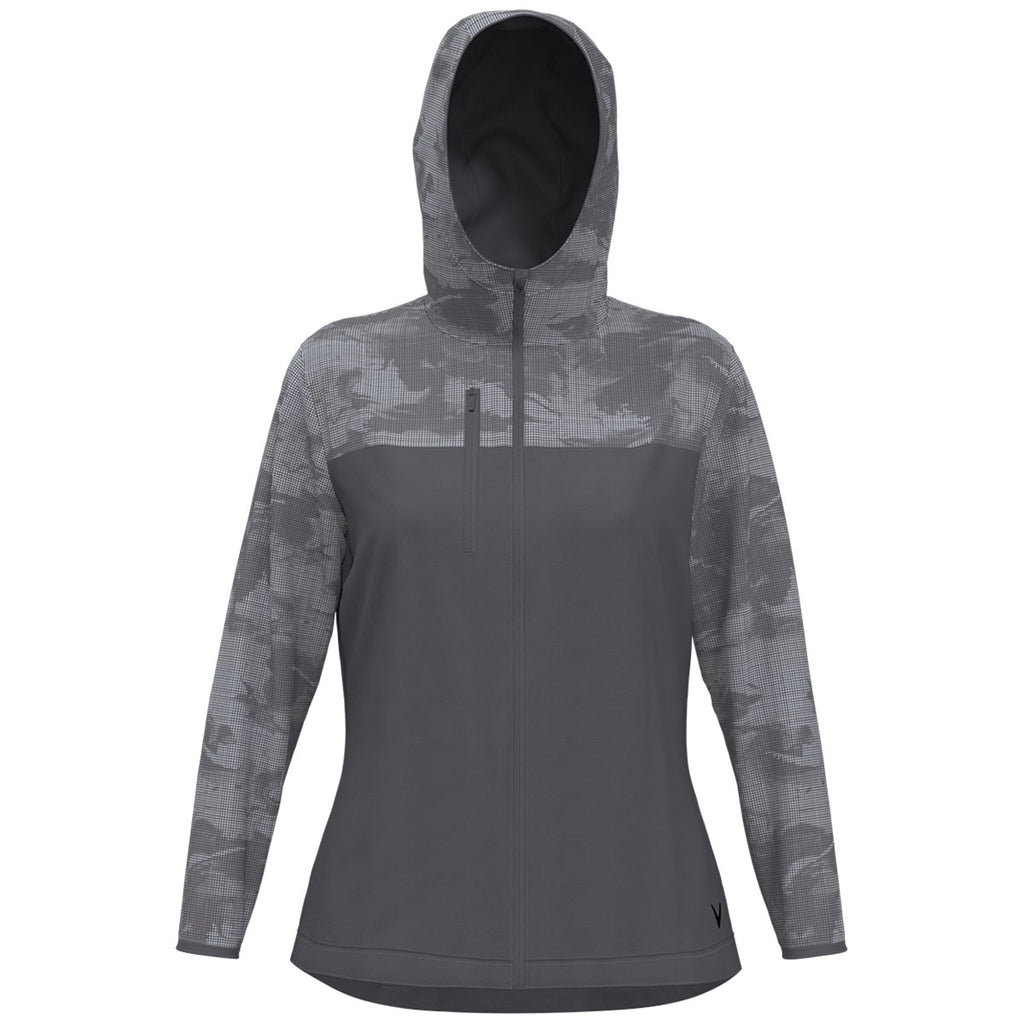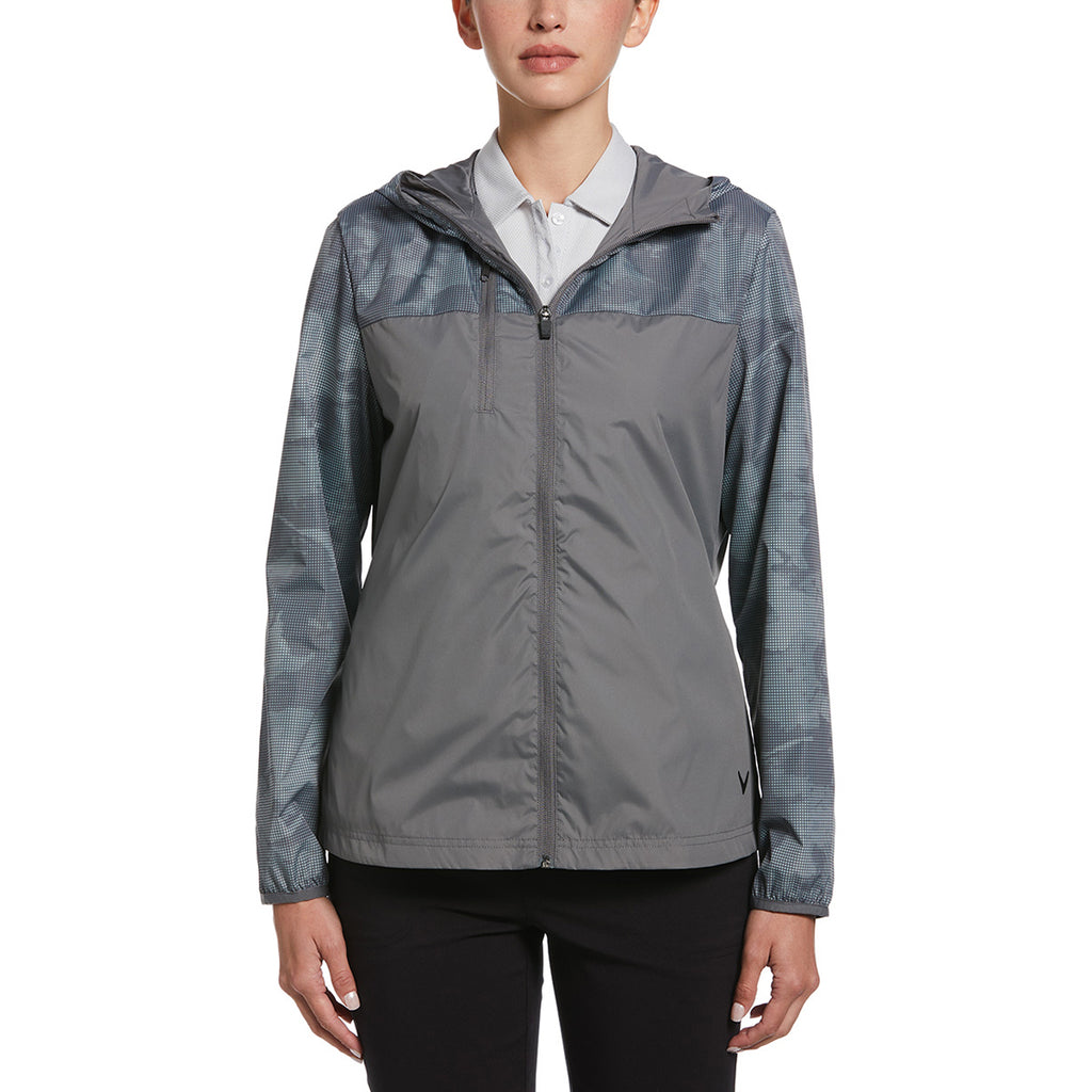 Callaway Women's Quiet Shade Packable Wind Jacket with a custom logo is a fun way to stay protected when enjoying the outdoors. The full-front zip jacket with mesh overlay on the shoulders and sleeves shows the camo pattern underneath for a pop of color. Ideal for hiking, biking, or those who work outdoors. Place an order today.Corresponding Men's Style: Callaway Men's Quiet Shade Long Sleeve Packable Wind Jacket