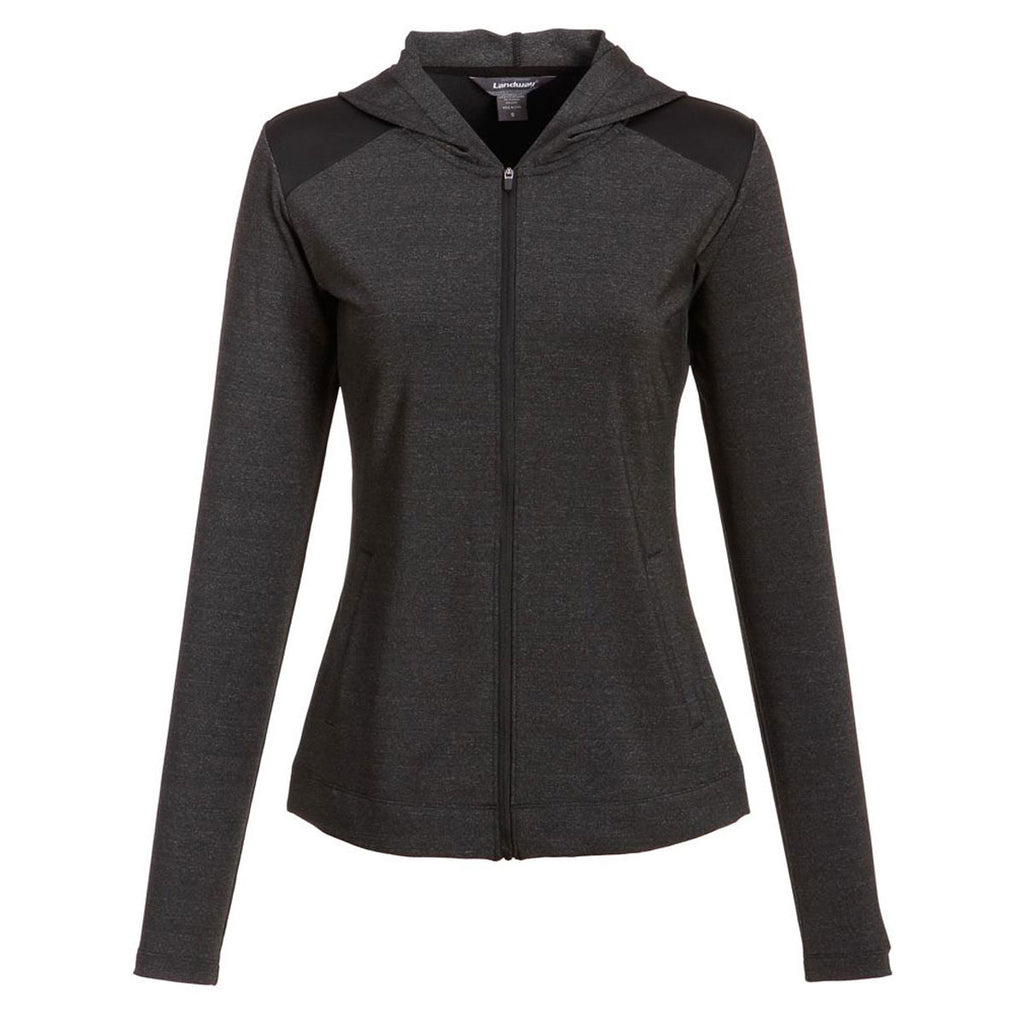 What does four-way stretch mean for the corporate logoed Landway Women's Carbon Aspire Stretch Hooded Jacket? It means you gain considerable more mobility than what is offered by other styles of hooded jackets. Stretch your arms further to take your backswing far enough to unleash a powerful drive on the golf course. Or maintain your movement throughout your busy day at the office. Breathable polyester and spandex ensure you remain comfortably cool all day long. Add your corporate logo on the large imprint area to connect with customer prospects at professional networking events. With a custom logo, you establish your company as a major business player in your industry.Corresponding Men's Style: Landway Men's Carbon Aspire Stretch Hybrid Jacket