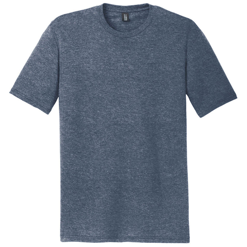 For a custom screen printed look try the District Men's Navy Frost Perfect Tri DTG Tee. Made of revolutionary printing technology fabric with a tri-blend material, this tee is exceptionally soft and comfortable for repeated wear. The lightweight material is ideal for creating employee apparel with a company logo whether worn every shift or just for special employee events. Also wonderful for a custom logo that shows affiliation with a team, cause, or event that brings people together for a unified reason. Create a special phrasing or icon to add to your logoed apparel line and watch as it gains popularity.Highlights