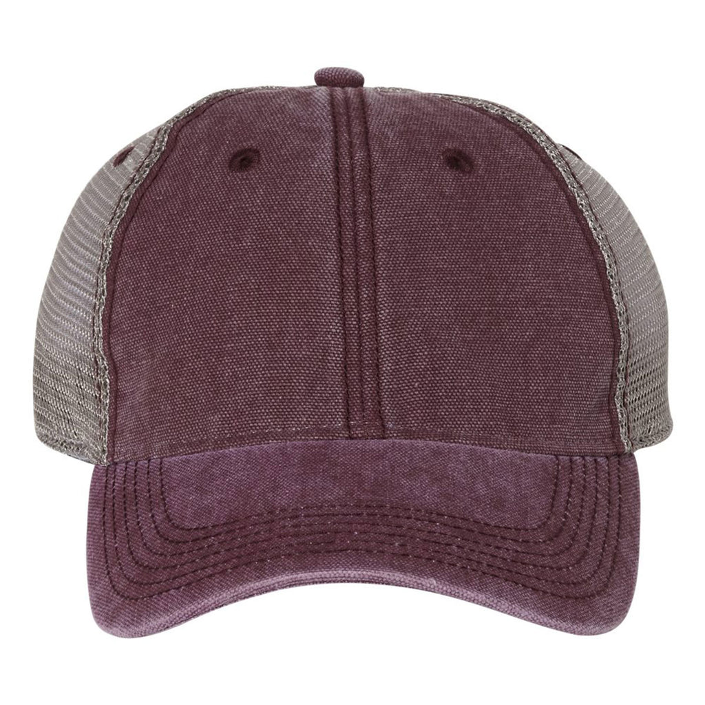 Go old school with embroidery on a Legacy Burgundy/Grey Dashboard Trucker Cap. In true trucker cap style fashion, the cotton polyester front is completed by the washed canvas crown and mesh back. The worn in look adds flair to this traditional style with the pre-curved visor for impressive fit. Add a company logo to use as part of employee apparel or uniform wear or add a custom logo to create a unique gift or sales item. The unstructured, six-panel, low profile design is comfortable from day one in the one size fits most style with snapback closure for adjustment.Highlights