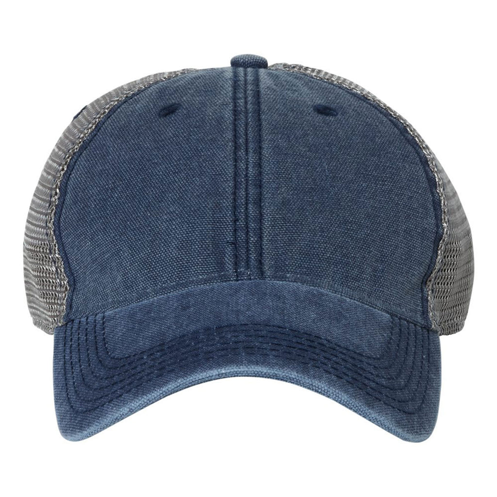 Go old school with embroidery on a Legacy Navy/Grey Dashboard Trucker Cap. In true trucker cap style fashion, the cotton polyester front is completed by the washed canvas crown and mesh back. The worn in look adds flair to this traditional style with the pre-curved visor for impressive fit. Add a company logo to use as part of employee apparel or uniform wear or add a custom logo to create a unique gift or sales item. The unstructured, six-panel, low profile design is comfortable from day one in the one size fits most style with snapback closure for adjustment.Highlights